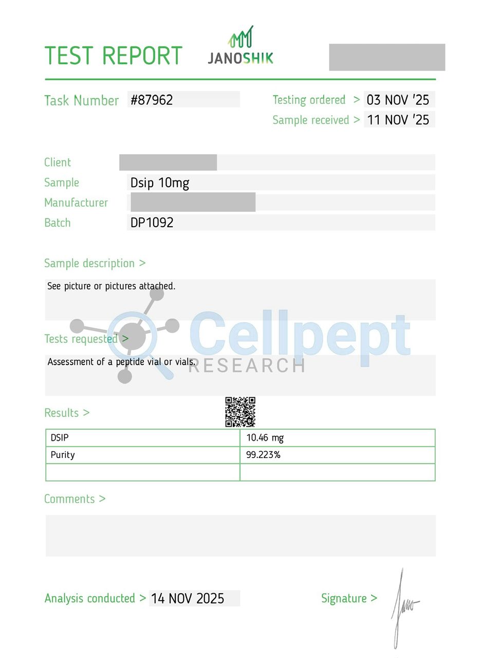 Delta Sleep-Inducing Peptide (DSIP) is a naturally occurring neuropeptide that has been studied for its involvement in sleep regulation and stress response. In scientific research, DSIP has been explored for its effects on sleep architecture, circadian rhythms, and neuroendocrine balance. It is also of interest in studies examining recovery processes, stress adaptation, and central nervous system signaling.